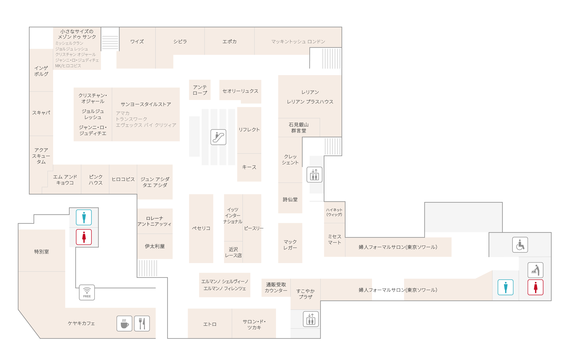 此楼层提供免费Wi-Fi连接服务。请输入密码“fujisaki”并使用。