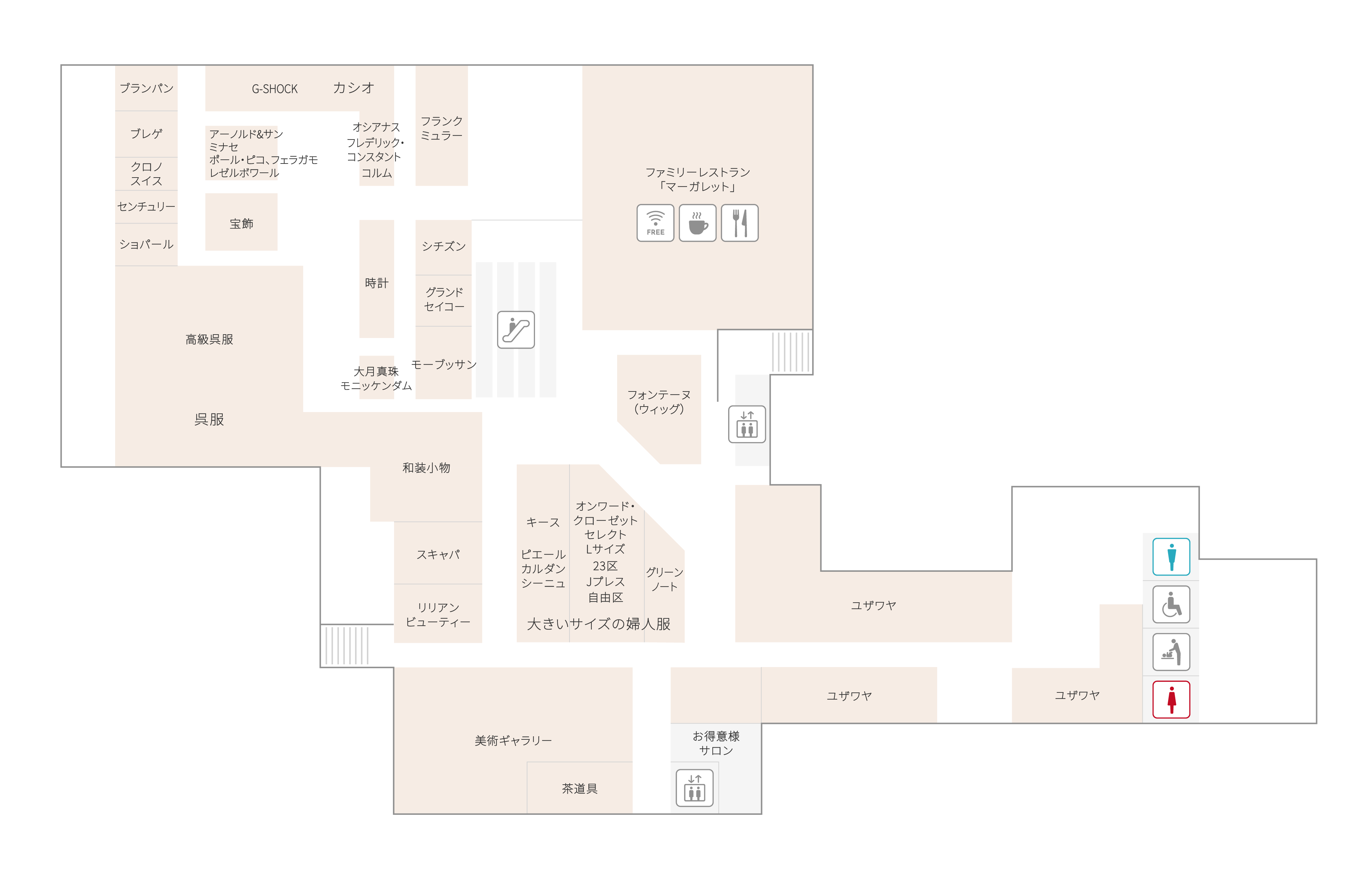 此楼层提供免费Wi-Fi连接服务。请输入密码“fujisaki”并使用。